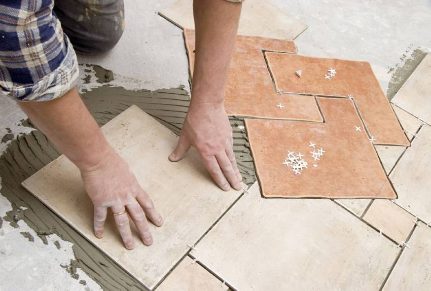 После того, как поверхность подготовлена, необходимые расчеты и замеры произведены, начинается непосредственно укладка плитки на пол.
