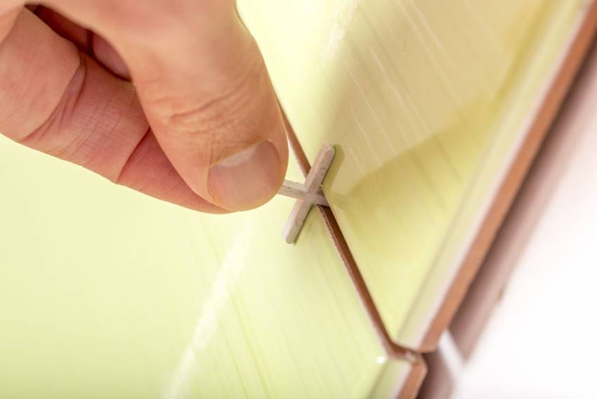 При работе с плиткой необходимо пользоваться специальными крестиками, которые помогут контролировать ширину швов и высоту укладки каждого элемента