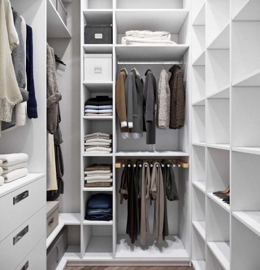Г-образная гардеробная комната для хранения повседневных вещей