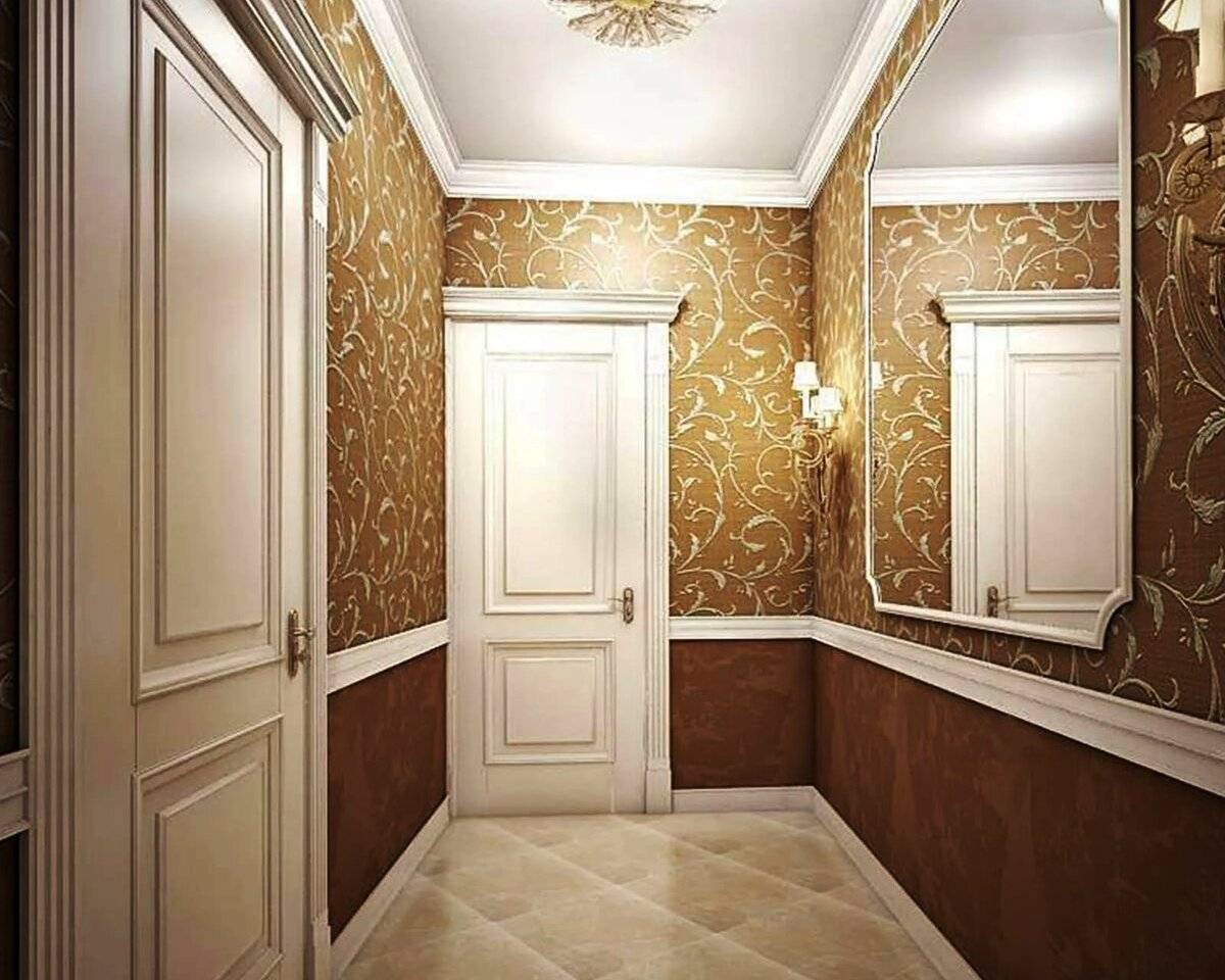 Дизайн обоев для прихожей: комбинированные материалы