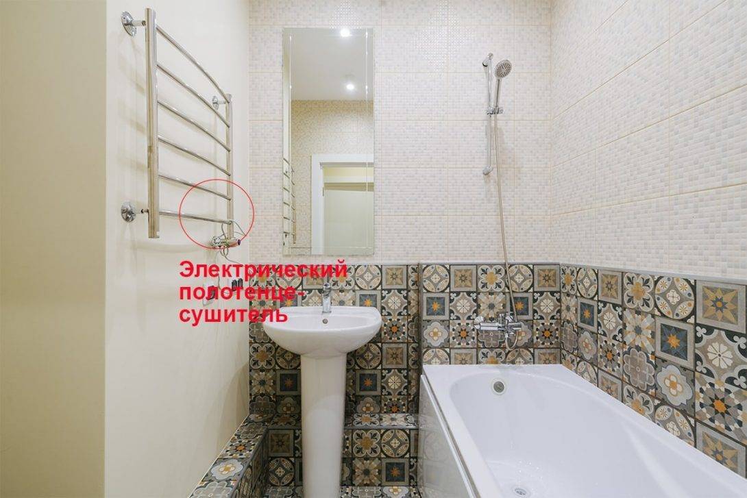 В квартирах Самолета в ванных комнатах установлены полотенцесушители: водяные или электрические. Водяной нужно осмотреть на наличие подтеков, трещин, неровностей покрытия.