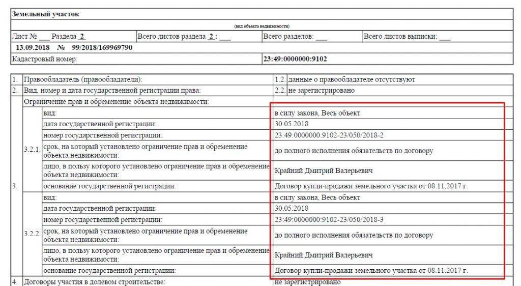 Вот так выглядит обременение в виде залога в выписке из ЕГРН: