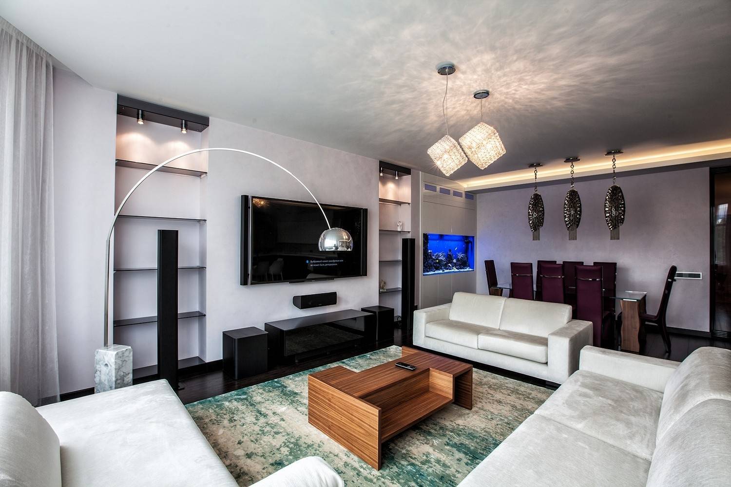 Современный стиль оформления интерьеров, и гостиная не исключение. Этот стиль подходит для городских квартир, которые обустроены по последнему слову техники.