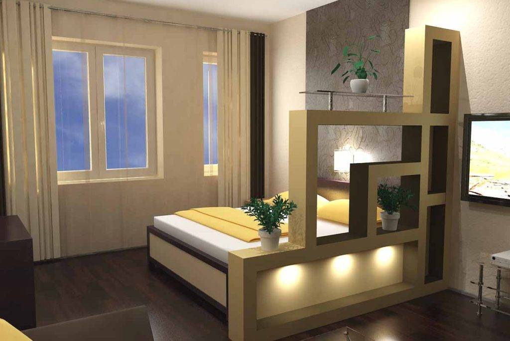 Очень часто, чтобы расширить полезную площадь, применяют способ объединения спальни с другими комнатами, например, гостиной. При этом спальное место будет отгорожено от остального пространства балдахином, занавеской, ширмой, перегородкой.