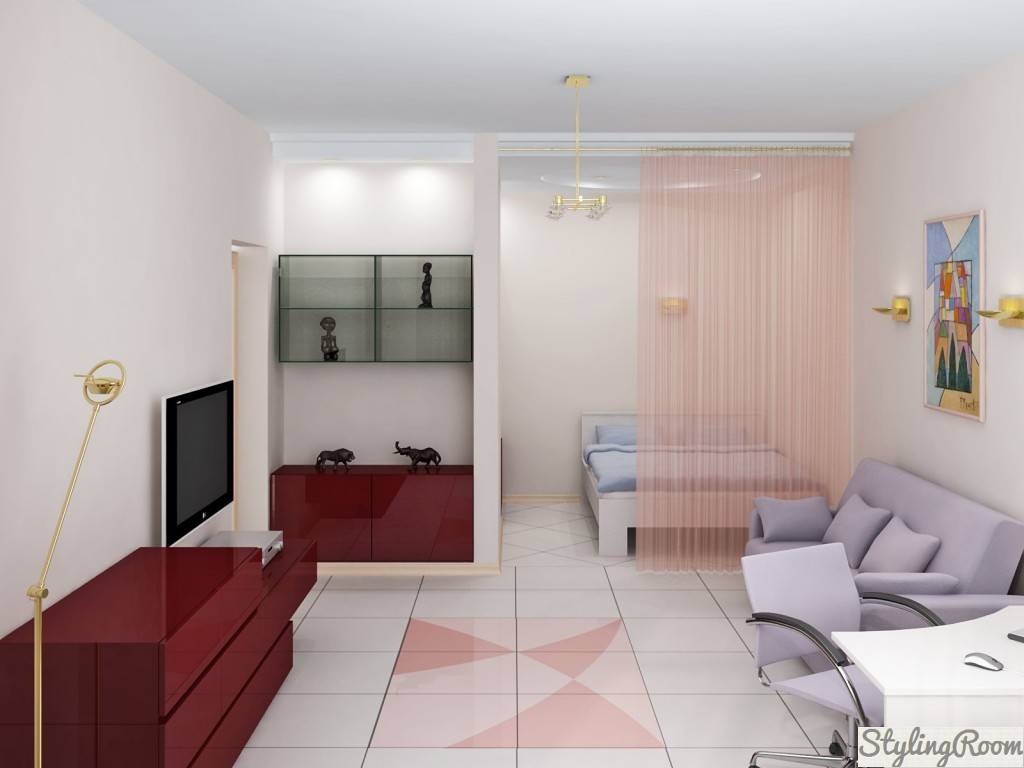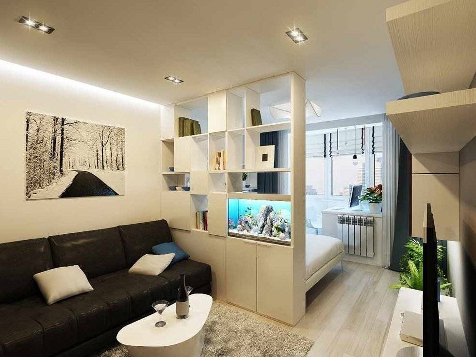 Когда речь идет о небольших однокомнатных квартирах, особенно привлекательно выглядит идея совмещения нескольких функциональных зон. Рассмотрим на конкретных примерах.