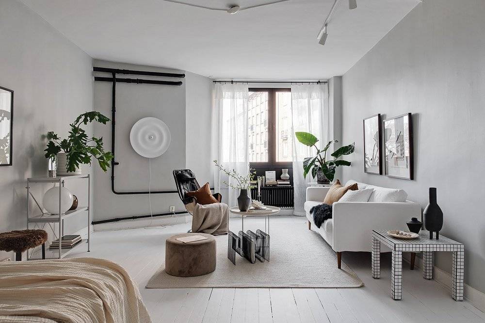 На первый взгляд кажется что это самый простой вариант в оформлении и всего должно быть просто мало, поэтому соответственно, стоить это будет меньше. А на деле дизайн в этом стиле может обойтись совсем недешево. Наиболее выигрышно он будет смотреться в помещении с высокими потолками.