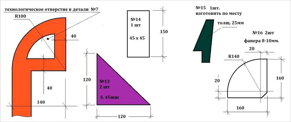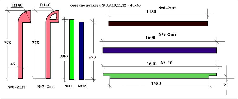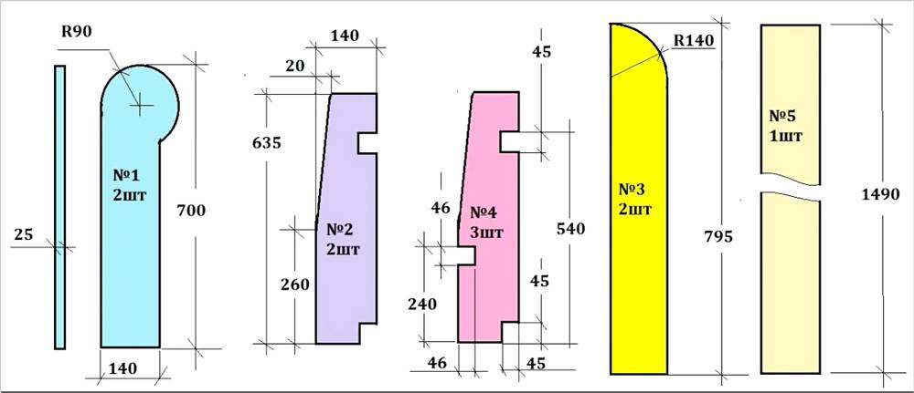 Итак, следует подготовить все заготовки и выпилить в них пазы в соответствии с представленными эскизами.