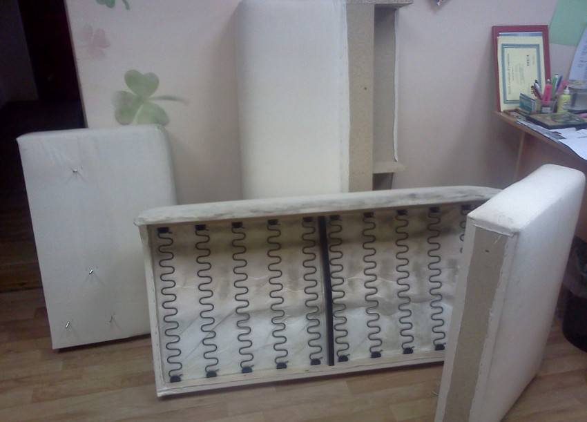 Подлокотники и передняя часть дивана обиваются ДВП.