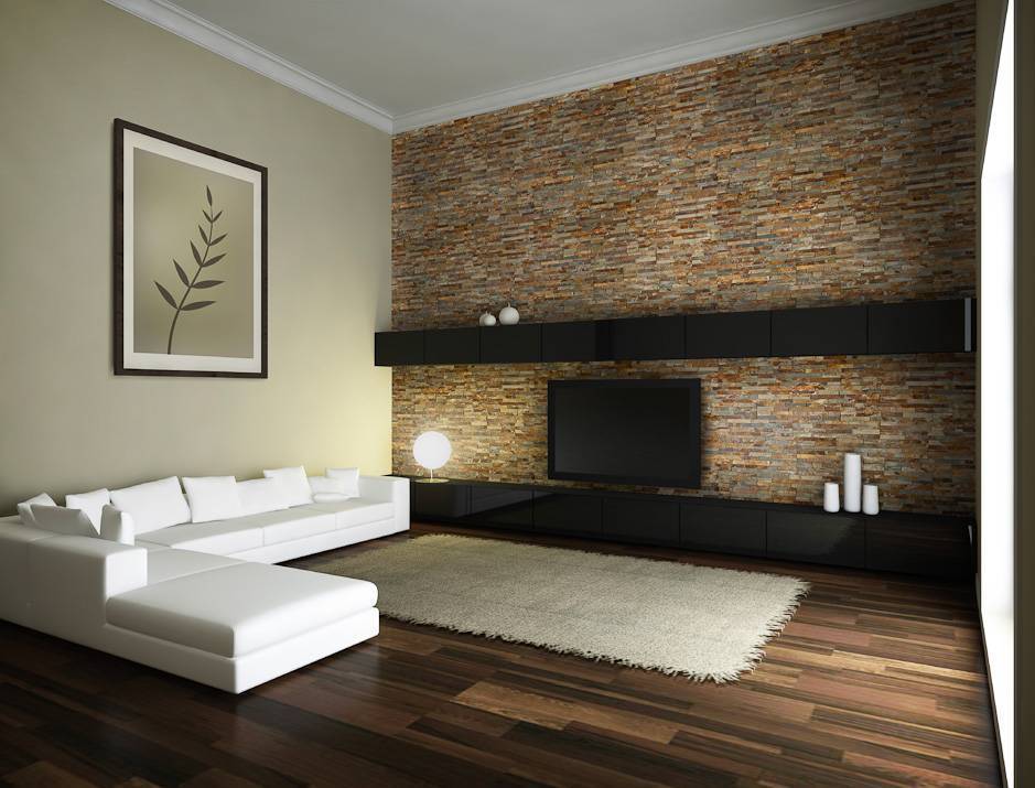 - Камень. Это дорого, но максимально натурально, эффектно и стильно. Вечный материал, который выдержит любые условия и сможет собой украсить буквально каждый интерьер. Тут можно выложить и ровную стену, подойдет и хаотичный порядок, а также использование камня как декора – тоже неплохой вариант преображения внутреннего убранства. Очень универсальный в применении материал, но требует правильной обработки и укладки.