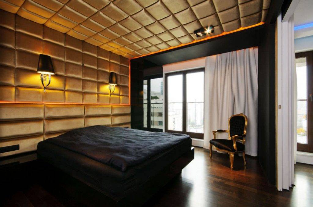 - Мягкая стена. Таким образом можно декорировать лишь часть стен, но не все пространство, так как это материал любит умеренное использование. Главное его преимущество – шикарный внешний вид, отдающий дороговизной. Готовые панели разных форм и цветов можно купить в магазине.