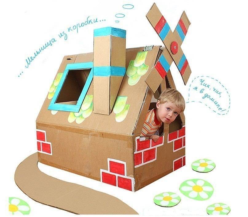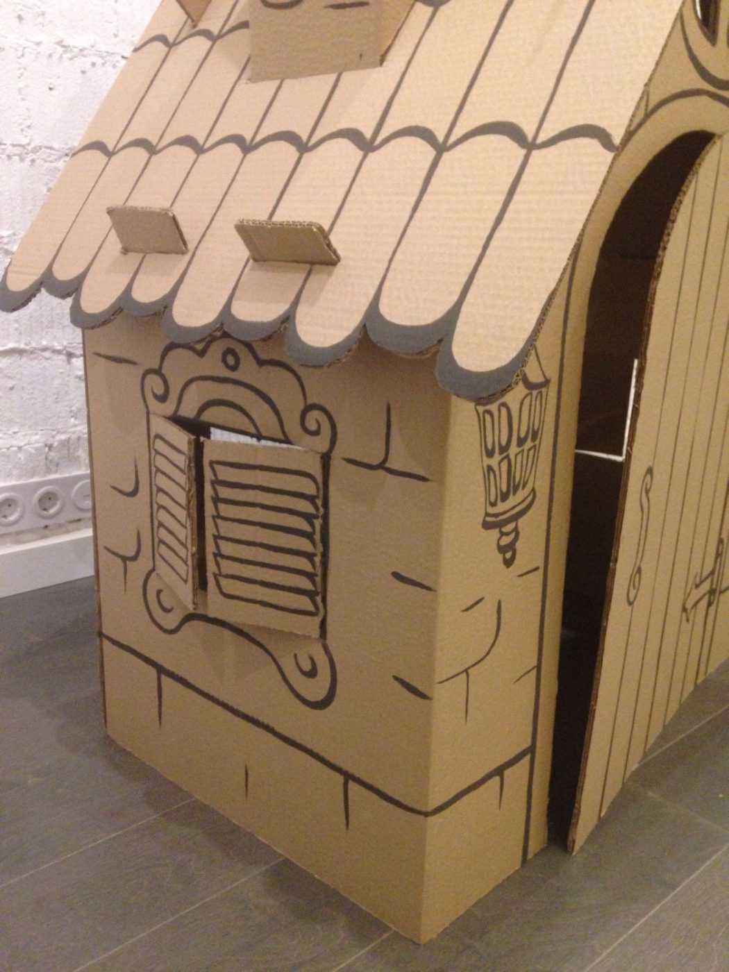 Кроме того, открытые проемы способствуют вентиляции (да и сам картон неплохо проводит через себя воздух). Поэтому картонный домик никогда не вызовет у детворы удушение и головокружение.