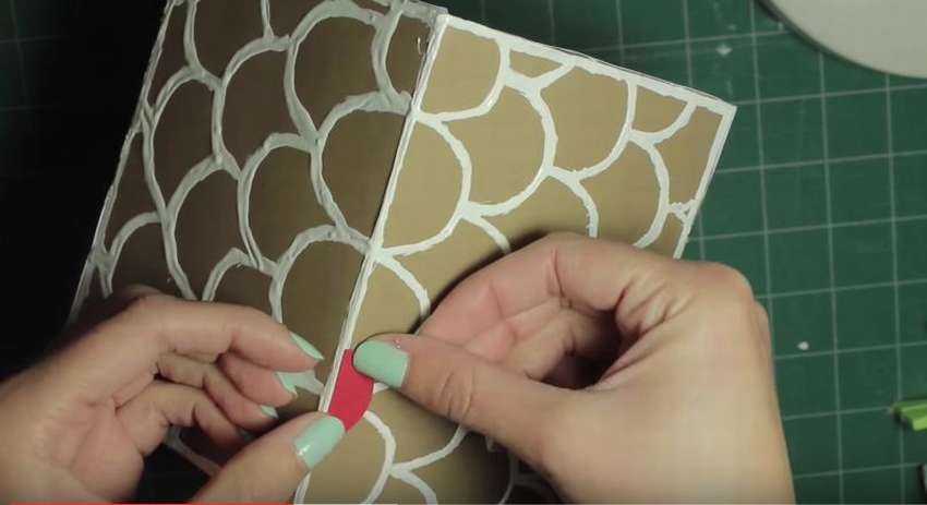 Соединять стены удобнее широкой малярной лентой. Она не повреждает картон при удалении, не придает неряшливости работе и не мешает при декорировании. Клей Момент Кристалл поможет зафиксировать картонные стены относительно друг друга: он быстро схватывается и не оставляет следов.