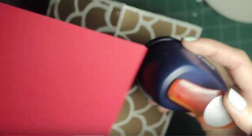 - Приступаем к вырезанию домика, сделайте загибы на углах стен и смажьте клеем загиб, который мы оставляли ранее. Дайте ему подсохнуть. Если у вас оказалась слишком тонкая бумага, чтобы придать домику устойчивости, приклейте его основу к плотному картону.