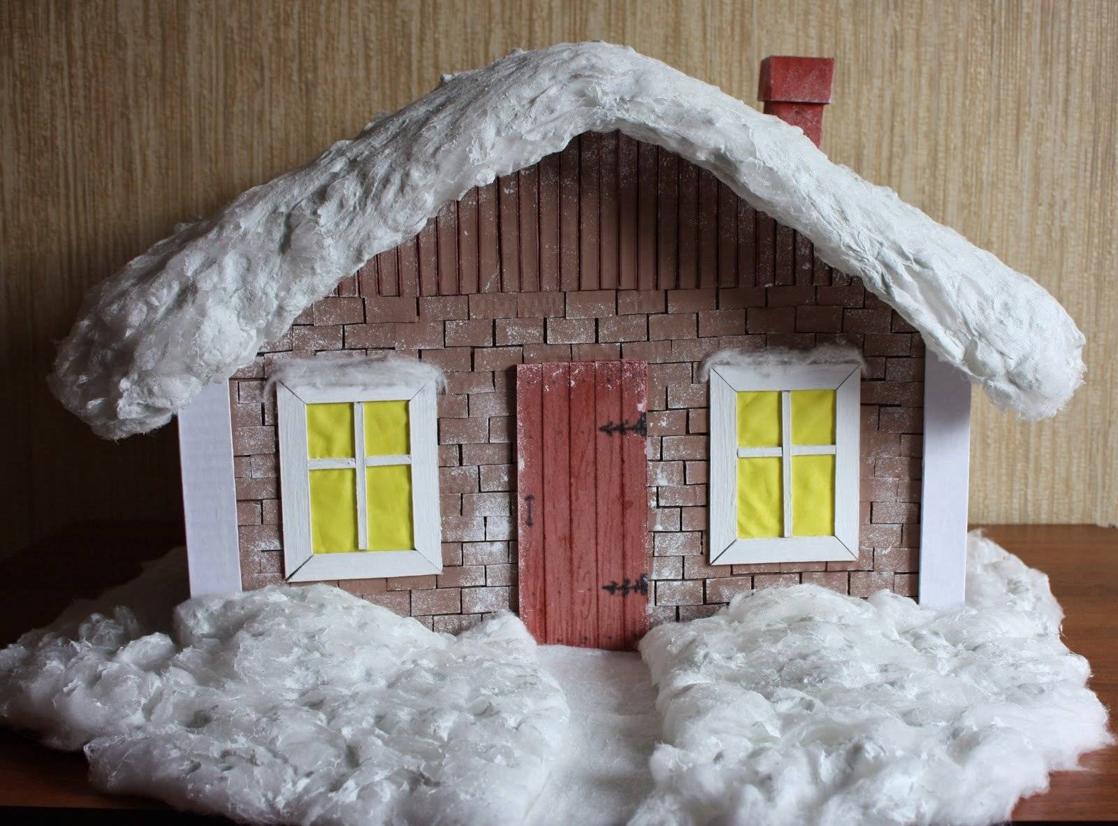 Маленькие новогодние домики украсят группу детского садика, школьный класс, домашнюю обстановку. Для украшения праздника подойдет как конфетная коробочка-домик, так и более солидное сооружение, где проживают куклы, переодетые Дедом Морозом и Снегурочкой. «Постройку» сооружают из: