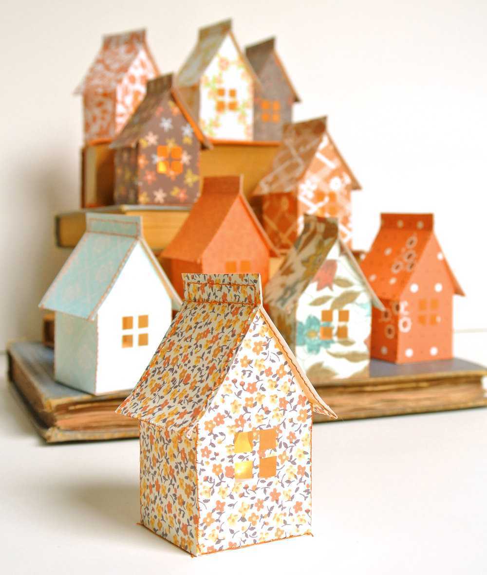 При изготовлении поделок необходимо ориентироваться на схемы и шаблоны домиков из картона. После того, как вы выберете наиболее подходящий вариант, следует перенести разметку на заготовку. Ну а дальше нет ничего сложного: