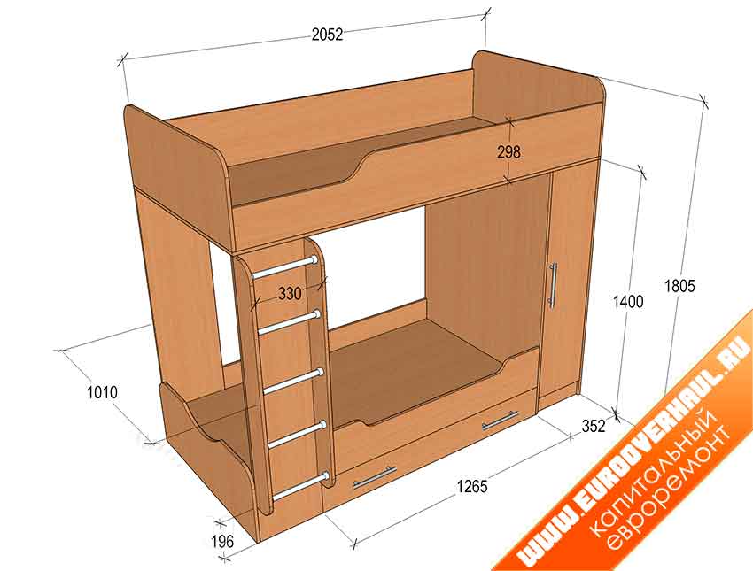 Ниже вы можете видеть чертежи двухъярусной кровати: