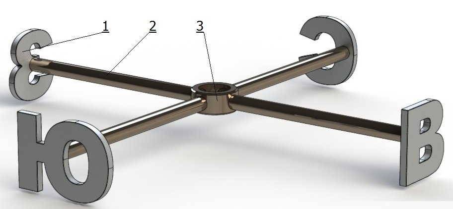- в нижней части устанавливается роза ветров, указывающая направление частей света, как дополнительный элемент может быть установлена ветромерная доска, она закрепляется на оси с помощью шарниров.