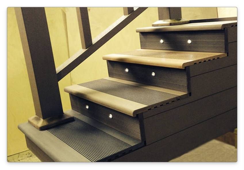 Если вы решили обустроить ступеньки из террасной доски, лучше подберите полотно из более дорогой древесины, ведь прослужат они дольше, чем дешевый лиственный материал.