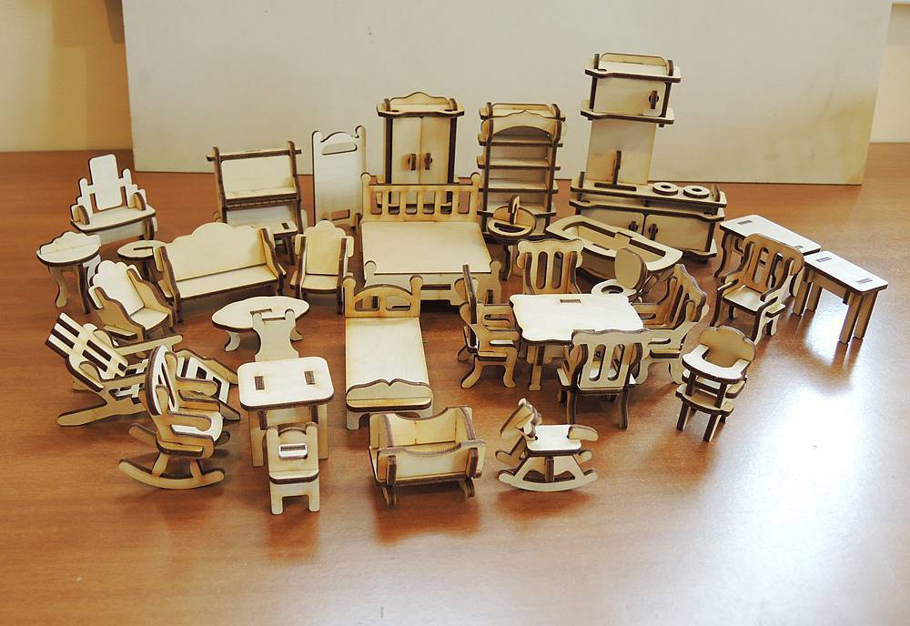 Гораздо прочнее, чем картон, но для изготовления маленького гарнитура потребует некоторой сноровки. Прежде всего, понадобится чертеж будущей модели. Можно обойтись и без него, но заранее спланированная мебель будет смотреться более гармонично и эффектно. Чертеж сначала делается на бумаге, затем обводится на фанерном листе и выпиливается подходящим инструментом. Готовую модель можно красиво разрисовать и покрыть лаком.