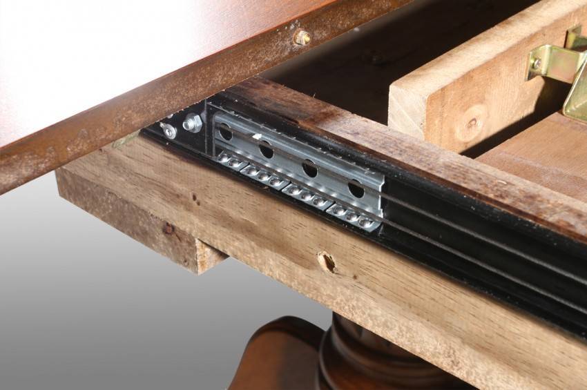 Чертежи раскладного стола своими руками Согласно чертежу, стол раскладной своими руками собирается на конфирматы. Не засверливаются только верхние столешницы («крылья» и «база»), чтобы не допустить повреждения декоративного слоя. Базу, центральную столешницу, крепят изнутри на металлические или пластмассовые уголки.