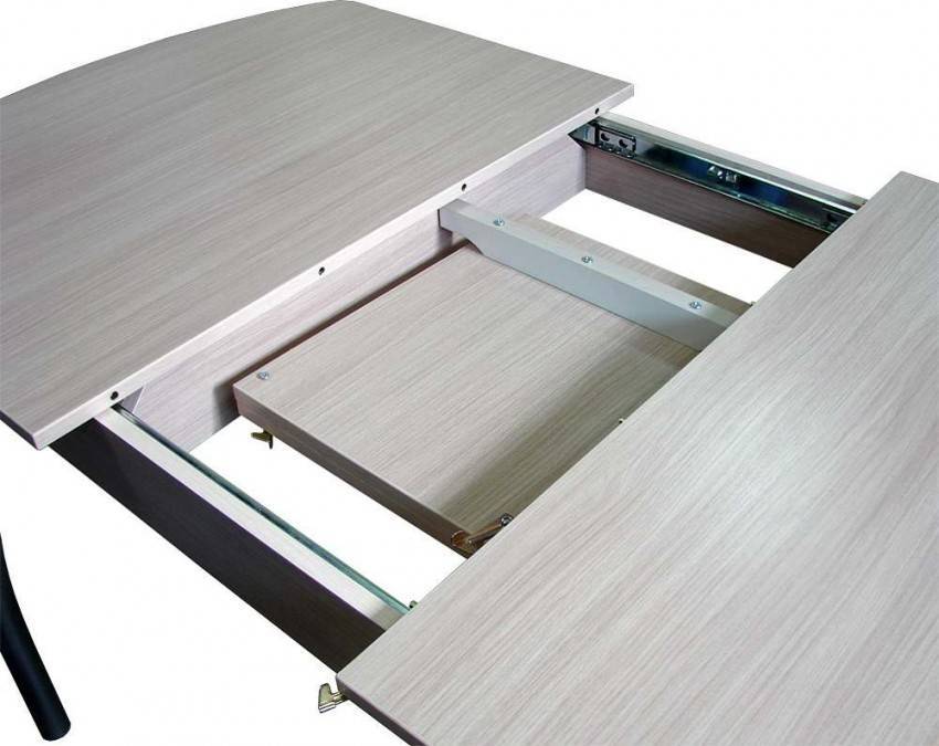 Кроме того, складные столы могут быть различной формы – круглые, овальные, с закруглёнными краями. Благодаря немецкой и австрийской фурнитуре столы могут раскладываться с поднятием вверх, с выдвижными деталями. Мощность механизма позволяет увеличить конструкцию более чем в 5 раз!