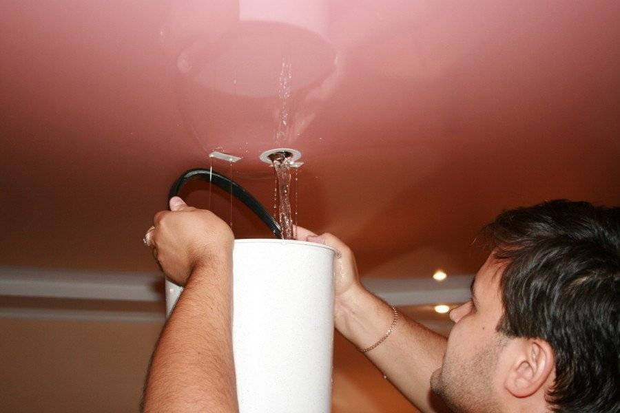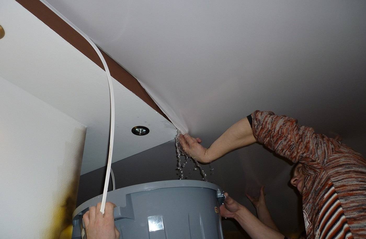 Как слить воду с натяжного потолка самостоятельно
