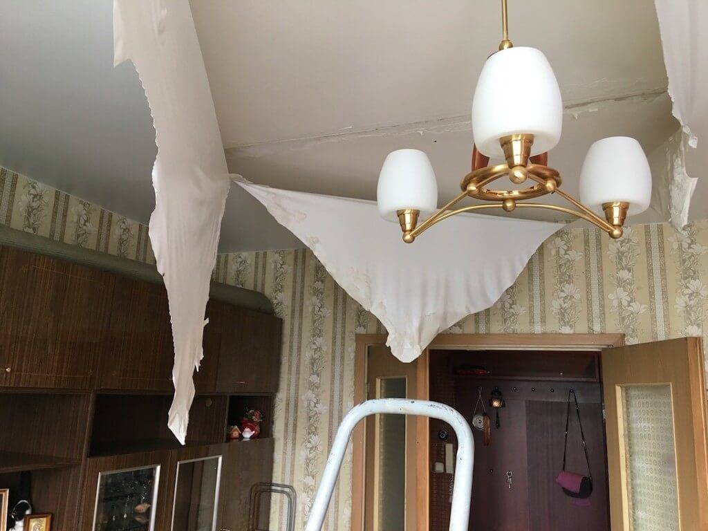 Что делать, если затопило натяжной потолок в квартире