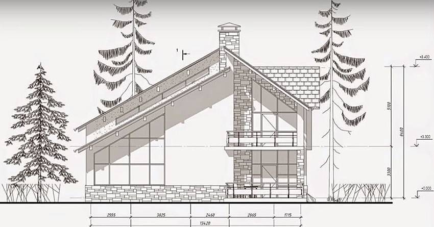 Уже на этапе составления эскиза нужно четко определиться с количеством этажей, типом кровли, внешним видом фасада и фронтальных частей дома, вплоть до количества окон, балконов, наличия террасы или мансарды. Эскизный проект также предполагает наброски вида здания в продольном и поперечном разрезах, где указываются особенности конструкции и материалы, из которых предполагается возводить дом.