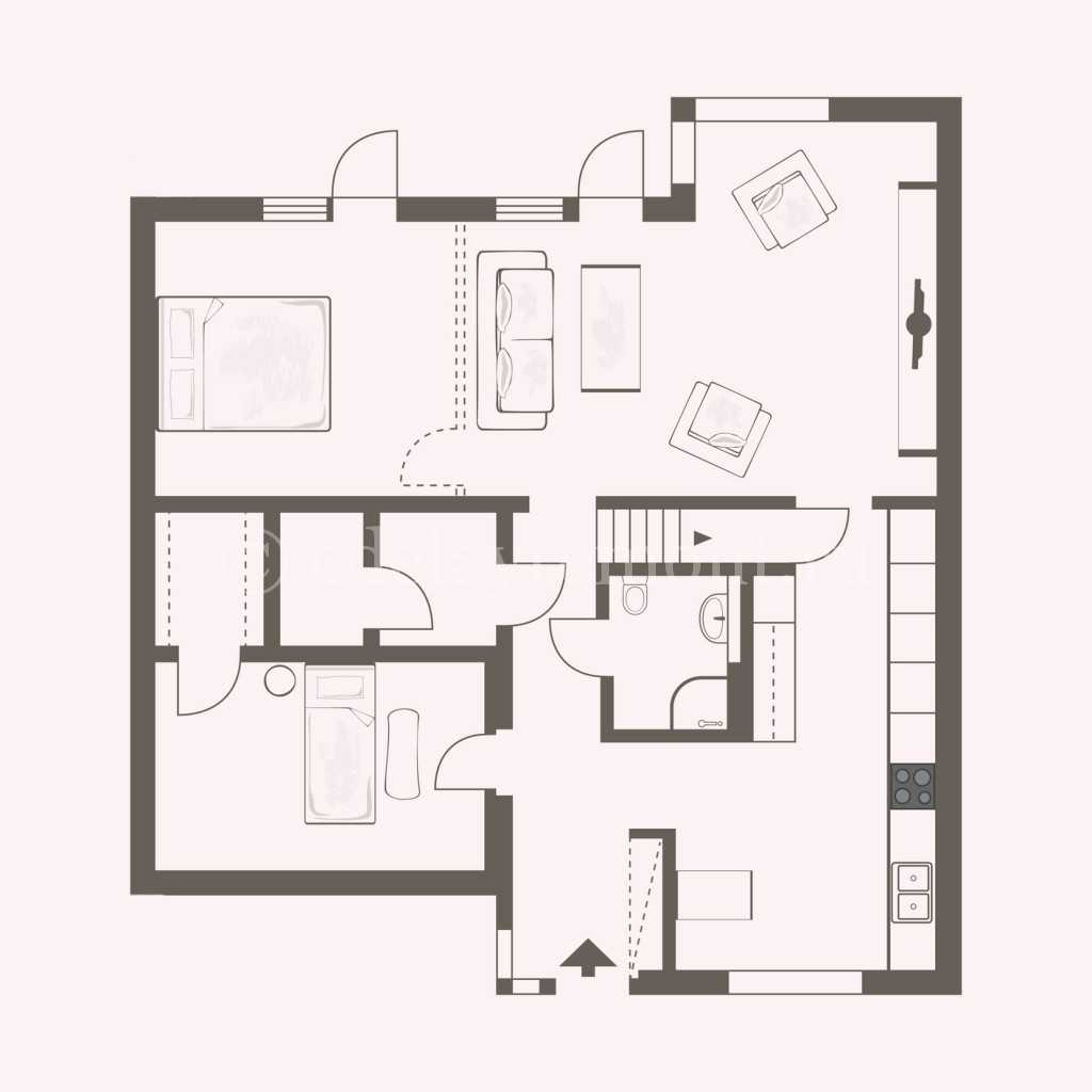 Одноэтажный дом разграничивают на зоны с помощью перегородок, а также размещая помещения однотипной функциональности в одном крыле. В двухэтажных коттеджах спальни, гостевые и детские комнаты традиционно располагаются на втором этаже, а на первом находятся хозяйственные и служебные помещения общего пользования.