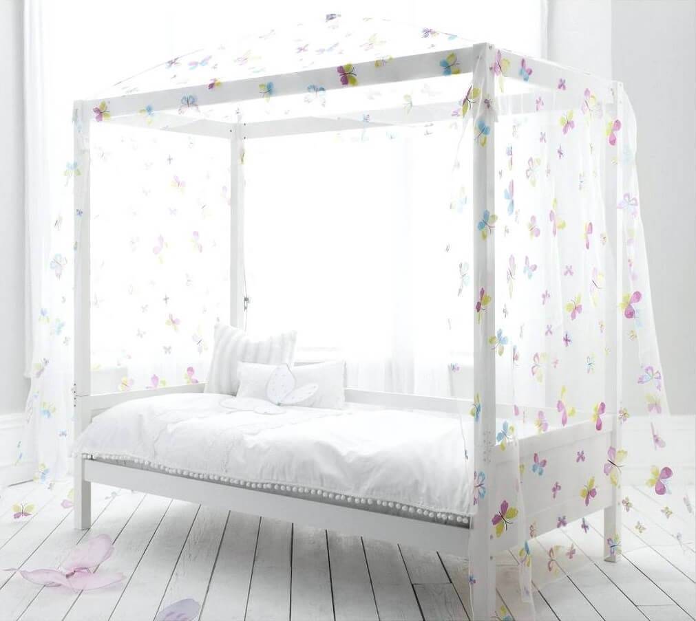 Балдахин из натуральной ткани может служить эффектным украшением детской комнаты