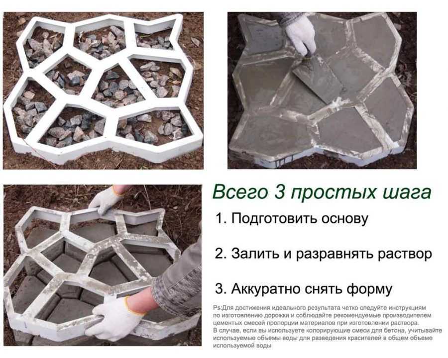 Сделать форму для брусчатки нужной модели. Затем все, что нужно сделать, это подготовить цемент и добавить его в форму для брусчатки. Через 5 минут все, что нужно сделать, это удалить излишки. Вот и все, просто нужно повторить операцию столько раз, сколько необходимо, чтобы получить однородную дорожку из булыжника. Будьте осторожны, цементу нужно дать просохнуть в течение недели, чтобы можно было выложить им дорожку или создать из него кашпо для растения.