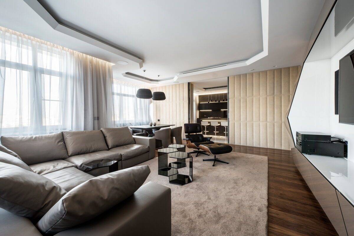 оттенки. - Минимализм – такой стиль прекрасно смотрится в больших квартирах. Он