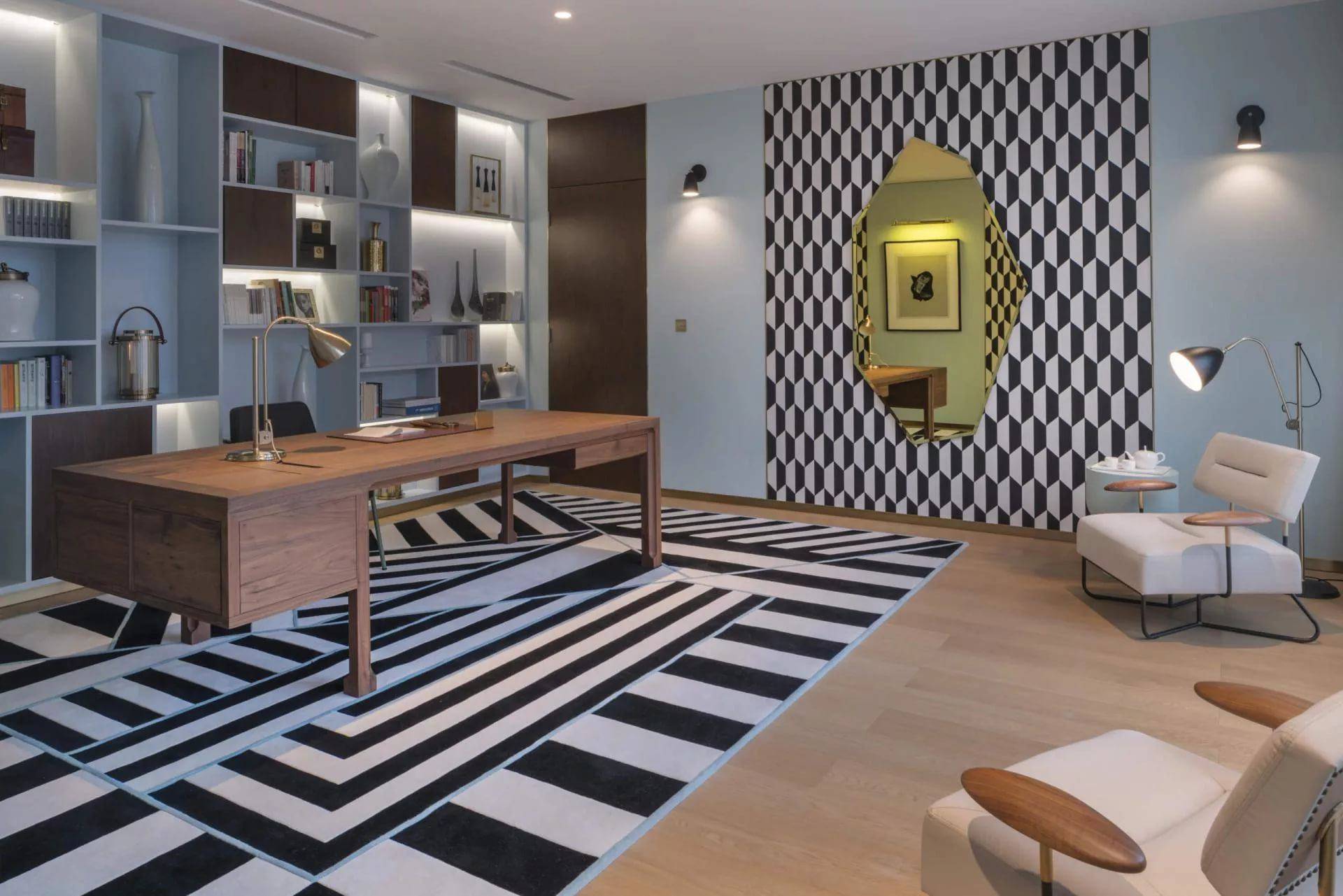 В средних и крупных комнатах стоит использовать контрастирующие расцветки, чтобы подчеркивать геометрические свойства комнат и визуально разбить территорию на зоны.