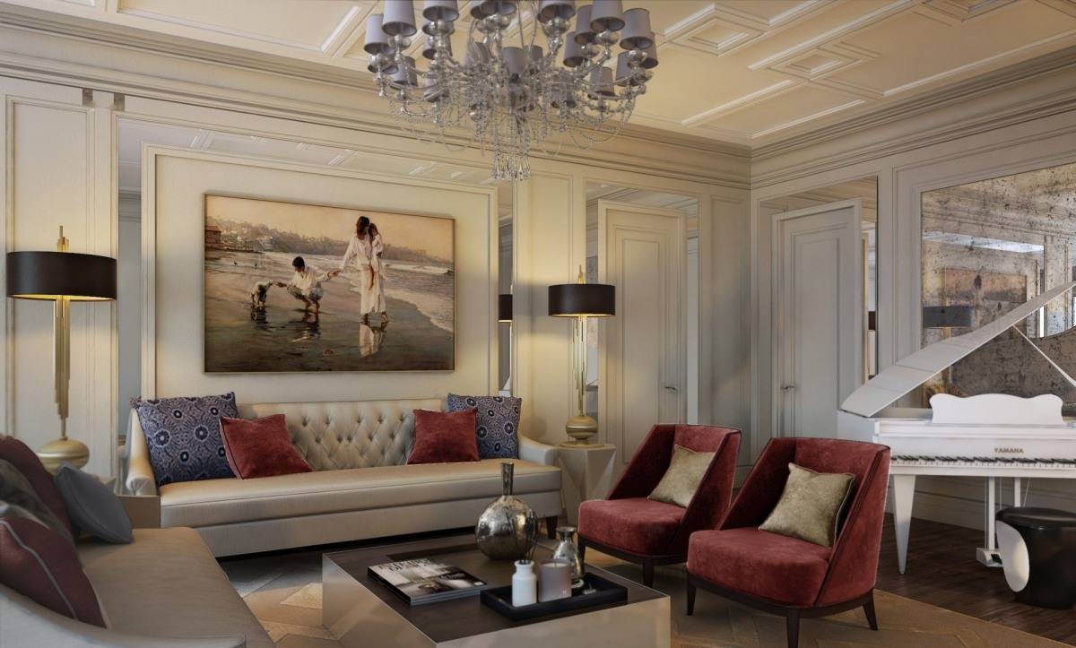 характерны роскошь и шик: мебель из дорогого дерева, уникальный декор, лепнина