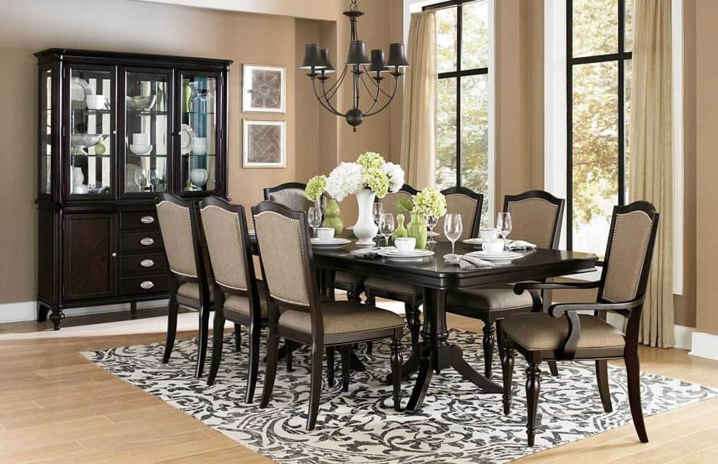 Выбирая ковёр в столовую, учитывайте, что в этой зоне необходимо часто убирать, чтобы изделие не пачкалось. Лучше выбирать ковёр тёмных оттенков и с коротким ворсом – за ним проще всего ухаживать.