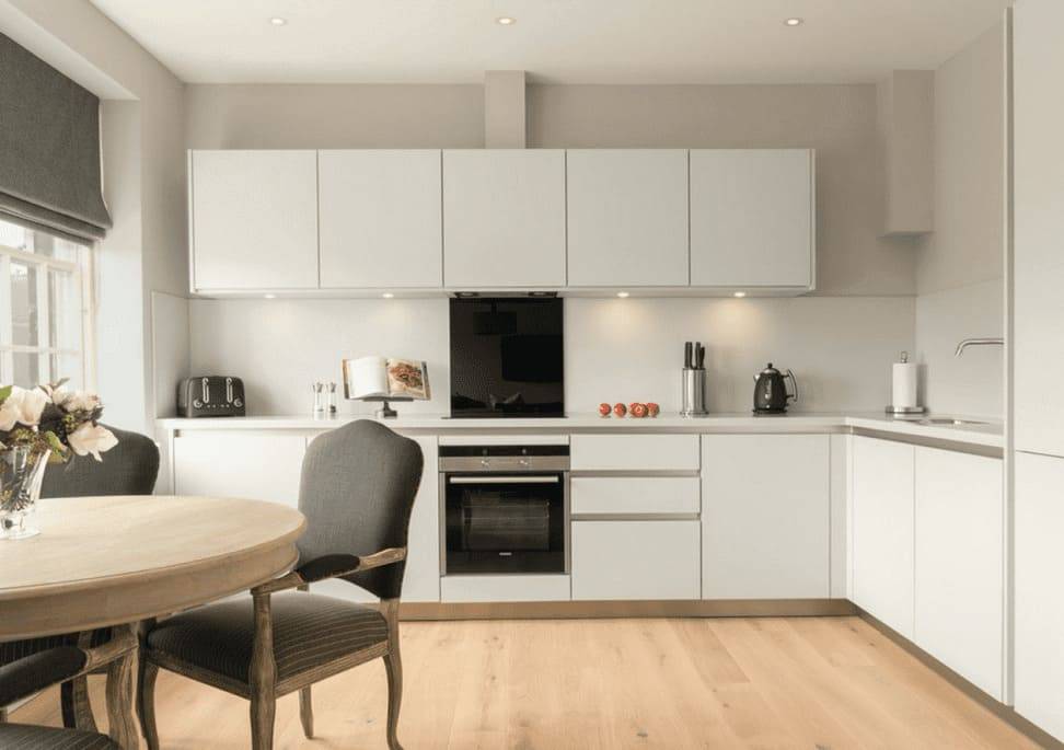 При выборе цвета для ваших шкафов, выбирайте белый. Он создает чистое и открытое пространство