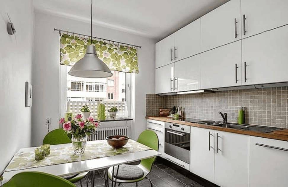 Чтобы маленькая кухня выглядела просторнее, желательно использовать светлые тона.