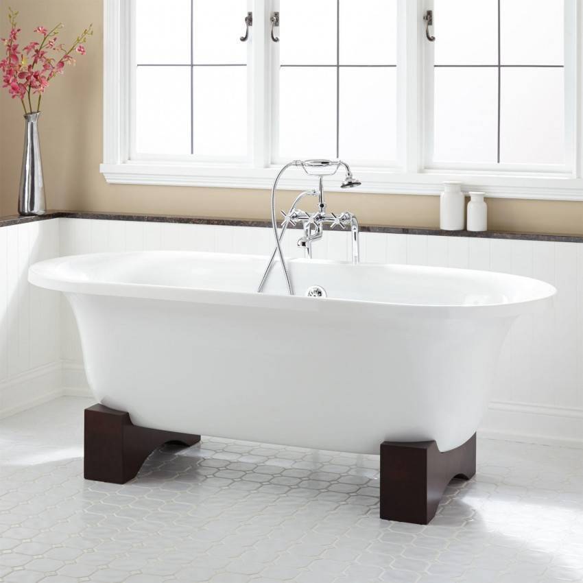 Это старая добрая классика и самый надежный вариант. Конечно, они очень тяжелые: их нелегко поднимать на любой этаж и не стоит устанавливать в старых домах с ненадежными перекрытиями. Но зато чугунная ванна выдержит самого крупногабаритного дяденьку и переживет бомбежку. Эмалевое покрытие чаши не истирается более 30 лет! К тому же чугун отлично сохраняет тепло воды и создает минимум шума во время ее набора. К минусам таких ванн следует отнести то, что в таких ваннах нельзя замачивать и стирать белье – чугун боится агрессивных стиральных порошков, они вступают в реакцию с эмалью и она становится тусклой и пористой (что, забегая вперед, нельзя сказать об акриловой ванне).