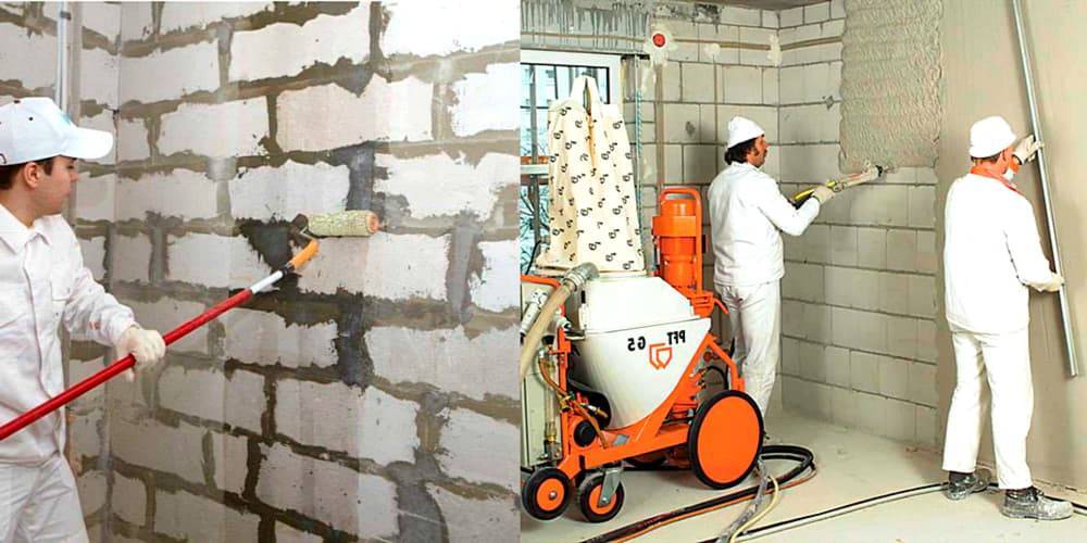 В последующем штукатурный слой грунтуется, затем сразу переходят к шпаклеванию или завершающей отделке.