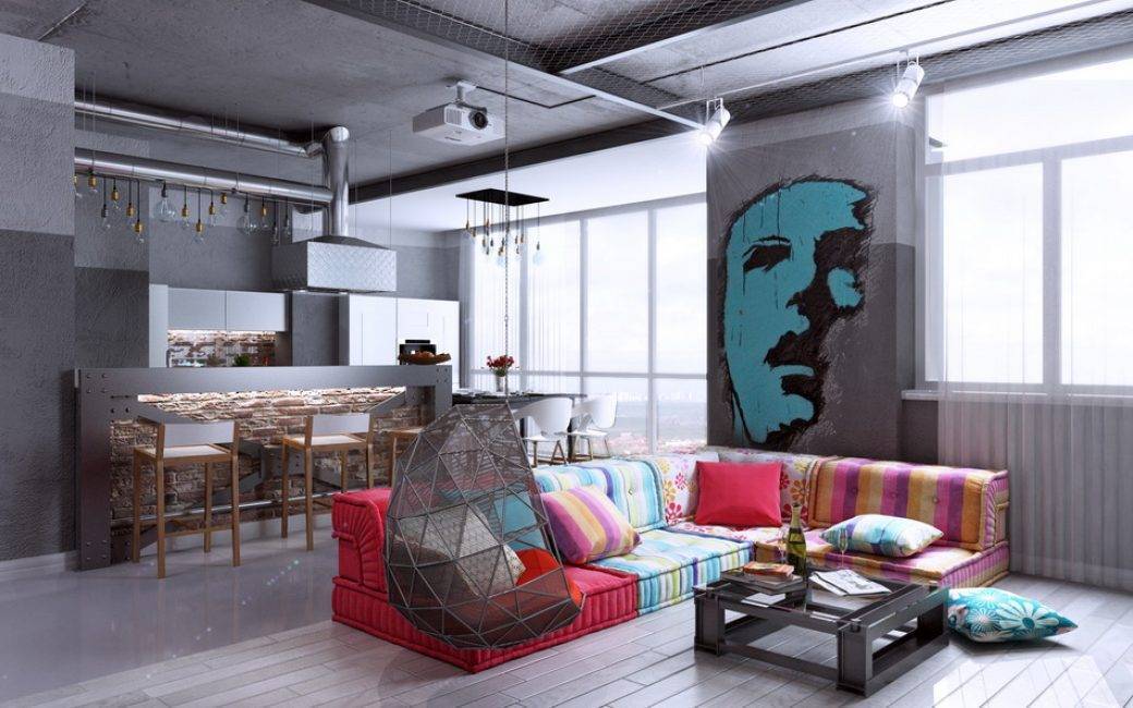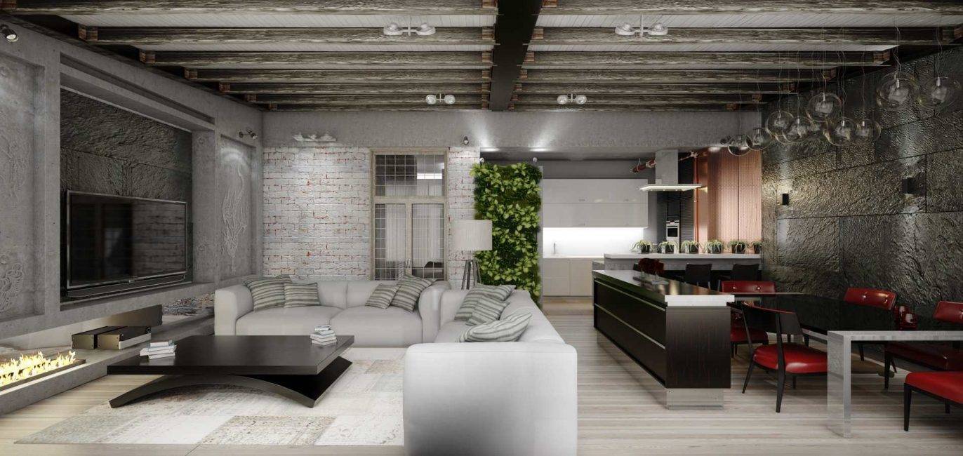 Обустраивая гостиную в стиле лофт, вы получите: