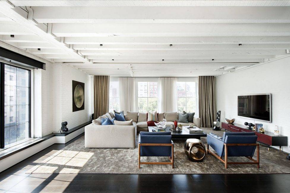 - Огромное, ничем не ограниченное помещение с высокими потолками – об этой особенности стоит помнить изначально. И если в вашем жилье низкие потолки, то данный стиль дизайна вам не подойдет.