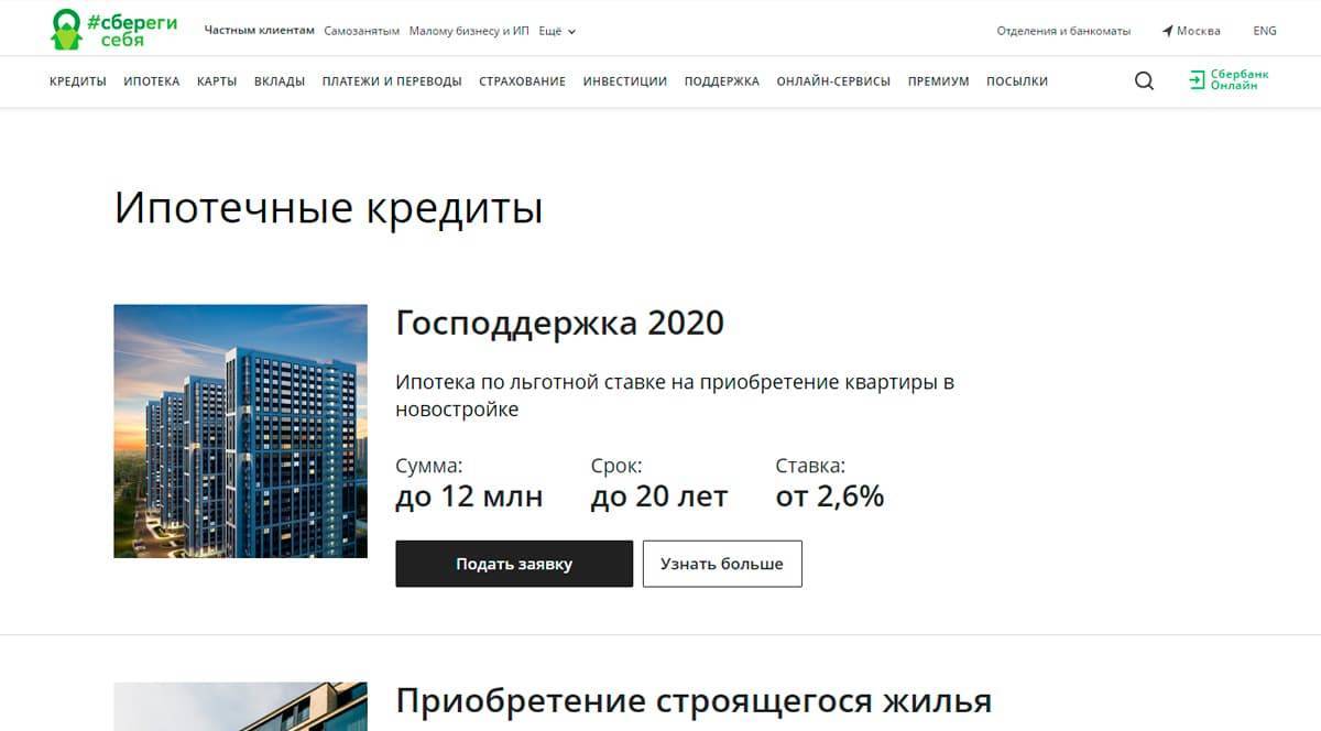 Если хотите получить ипотечный кредит с выгодным процентом, стоит обратиться в Сбербанк. Организация предлагает множество программ, среди которых приобретение строящегося жилья, льготные кредиты с господдержкой, ипотека на индивидуальное строительство жилого дома, рефинансирование ипотеки от других кредитных организаций.