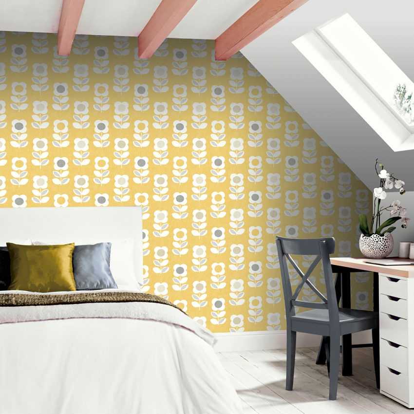 Еще один вариант оформления обоев с цветочным рисунком в спальне — использование в них более насыщенного цвета, который будет соответствовать другим видимым в комнате аксессуарам. Возможно: