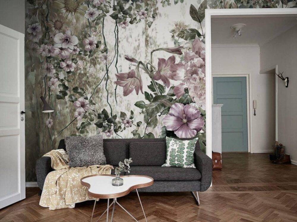 Цветы — еще один природный мотив, который также очень часто используется в производстве обоев. Этот узор может показаться слишком агрессивным для нанесения на стену. Между тем, обои с цветочным рисунком в приглушенных тонах привнесут в интерьер характер, который будет отвечать за дружескую атмосферу в комнате.