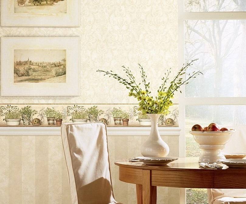 Комбинирование обоев на кухне с другими материалами требует учитывания важного нюанса: обработки стыка. Например, для плитки продаются специальные бордюры, которые помогают правильно оформить соединение