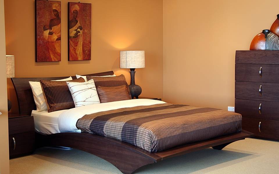 Здесь важно соблюдать гармонию не только между цветом и стилем, но и между фактурой материалов. Например, для нежной спальни прекрасно подойдут акварели, а для комнаты с деревянными панелями живописная морская тематика