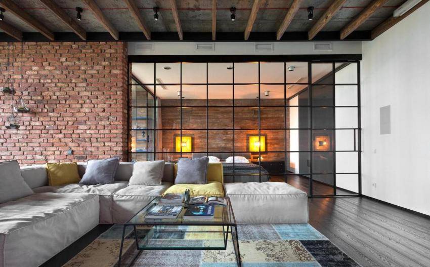 Кирпич в интерьере квартиры-студии