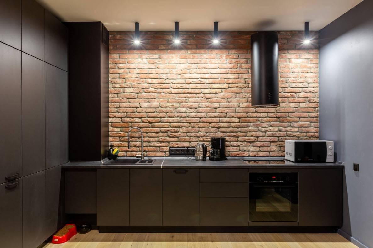 Традиционно считается, что кухня с кирпичной стеной может быть только в необузданном стиле лофт или деревенском стиле кантри. Безусловно, это верно, но современный кирпич, как отделочный материал, более многоплановый, поэтому он успешно сочетается и другими, даже весьма аскетическими или техностилями.