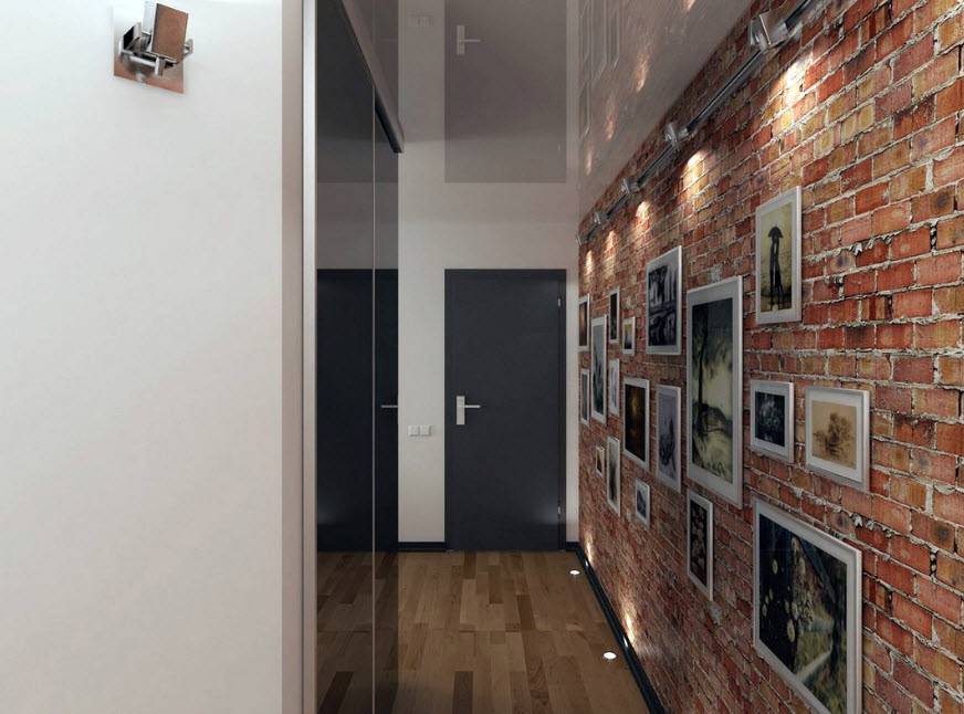К оформлению прихожей нужно подходить особенно кропотливо. Это первое помещение, которое видит человек, вошедший в дом. Обычно в квартирах прихожие обычно не очень большие, и белый кирпич поможет визуально увеличить пространство. Чтобы оживить интерьер дизайнеры предлагают использовать фотообои 3D (гармонично вписываются виды городов с узкими улочками). В такой прихожей хорошо смотрятся выделяющие элементы: разноцветные светильники, оригинальные картины, вазоны с растениями.