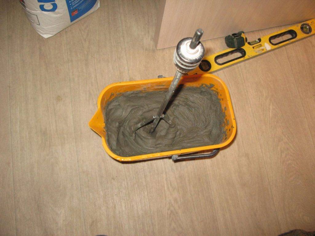 Очень важно купить лопасть для раствора, а не для краски. Специалисты применяют строительный миксер с венчиком, чтобы получить клеящую массу с нужными свойствами